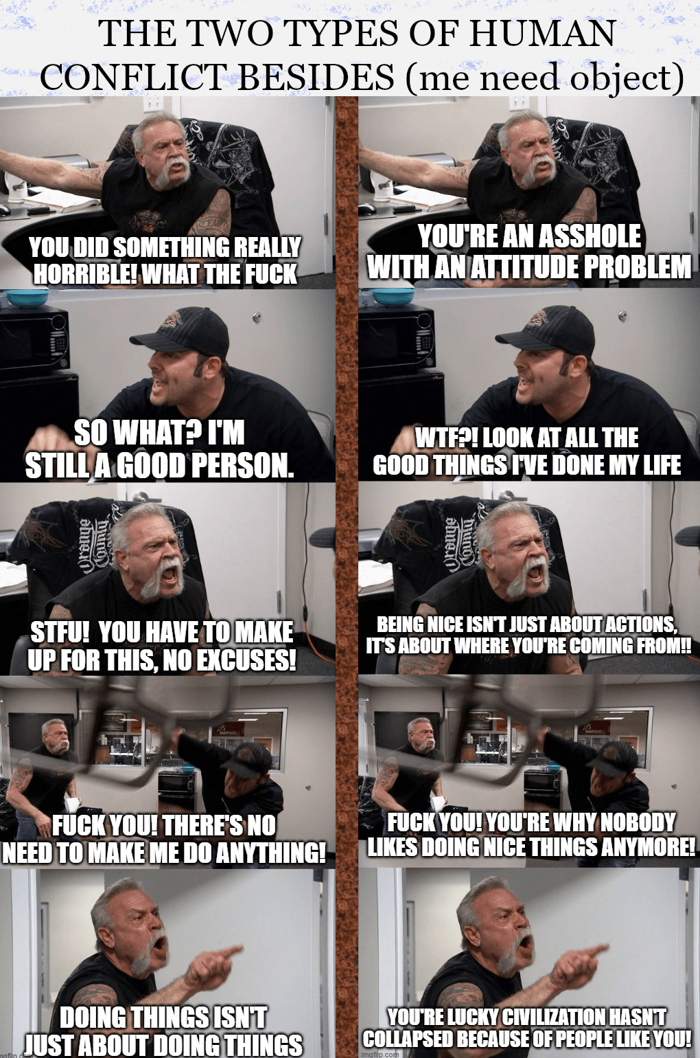 Sometimes, people may ask you to do things that can feel absolutely pointless. And they’ll take some pride in it. They might act really freaking gallant. But that doesn’t mean they’re the villains you say they are. Sometimes they’re just getting joy from the ability to manipulate possibilities toward self-interested goals, while not being ashamedContinue reading “Memes of Sheer Dignity – Bodacious Buzzwords!”